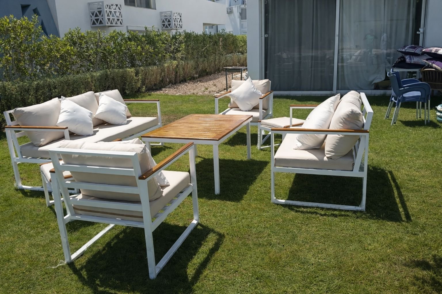 طقم أوت دور عملي ومتين، مناسب للاستخدام الخارجي اليومي، مصمم ليتحمل الشمس والعوامل الجوية مع راحة وثبات عاليين.
